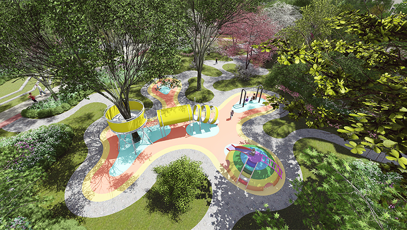 歲月擠占人生,閱歷會(huì)消磨童真,孩童的純真、生活的趣味都需要認(rèn)真珍惜保護(hù)。綠動(dòng)園林全齡化活動(dòng)區(qū)的設(shè)計(jì)將承載人們一生中每一段快樂(lè)的時(shí)光。