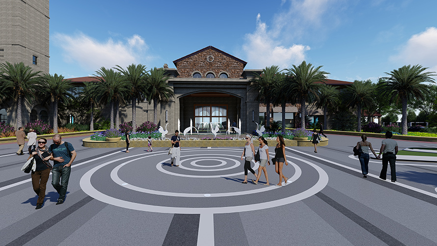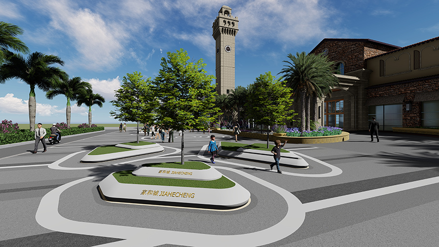 廣場空間打造安全有秩序的人車分流環(huán)境,無明顯出入口和人行路線,體現(xiàn)開放共享的現(xiàn)代設(shè)計理念。